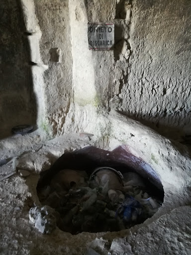 Una delle tante ex cantine materane che hanno fatto la storia della città, dove si produceva e conservava il vino, trasformata negli ultimi anni in locale per la ristorazione. Con la tipica struttura architettonica in negativo, cioè scavata, si presenta in senso longitudinale, in pendenza, sviluppandosi in tre ambienti ipogei più uno esterno chiamato "corte" che aveva il compito principe di captare le acque meteoriche convogliate tramite sistemi di grondaie che dal tetto portavano l'acqua nella grande cisterna esterna, collegata tramite canali sottoquota ad altre cisterne all'interno della struttuta. Il primo vano, cui si accede dall'unica apertura di ingresso, si presenta di solito più largo degli altri due, qui erano presenti i palmenti (vasche per la pigiatura dell'uva), una o più cisterne e altri elementi afferenti all'attività produttiva come nicchie-armadietti per riporre arnesi. Solitamente nella parte mediana del primo vano si apre l'accesso (un corridoio in pendenza con gradini) per il secondo e terzo vano, uniti tra loro da altrettanto corridoio in pendenza servito da gradini scavati nel blocco calcarenitico. Il secondo e terzo vano presentavano lungo le pareti laterali dei rialzi di circa 80 cm, dei muraletti di roccia distaccati dalla parete che servivano per poggiare le botti, chiamati appunto "poggiabotti", oggi totalmente spariti per avere maggior spazio per la fruizione delle stanzette, il corridoio che porta all'ultimo vano presenta quasi sempre lungo una delle due pareti laterali, l'imboccatura di una cisterna con annessa vaschetta laterale, alimentata da un canale sottoquota che la connette alle cisterne presenti nel primo vano, l'ultimo vano della cantina, presenta infine uno degli elementi chiave, la nicchia-meridiana posta sulla parete di fondo, scavata sulla parete verticale a circa un metro da terra, questa nicchia è posta perfettamente di fronte alla porta di accesso alla cantina, e in condizione di buio, in mancanza della luce elettrica in passato, veniva perfettamente illuminata dalla luce che penetra dall'ingresso, questo stratagemma serviva per avere un accesso agevole sia in discesa, sia in risalita, poiché la luce illuminava il battuto dei gradini. Oggi questa cantina è un locale che vanta ottima cucina, esperto e gentile personale ed eccelsi proprietari che hanno saputo valorizzarla al meglio, favorendo anche serate di musica dal vivo non consuete nel panorama dei locali materani....