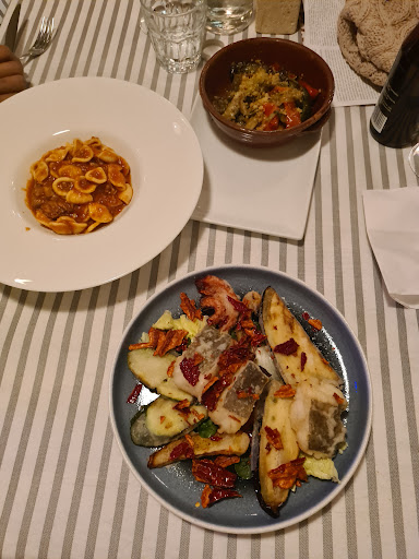 Read moreThe best food after 14 days of travelling around Italy. Very nice service too. We were seated without reservation after 3min waiting (with a dog). The place is beautiful. We choosed typical Peperoni cruschi (don’t miss them!) and Frisedda as a starter, both lovely. Than we choose pasta dishes: again local Orecchiette ragú and Paccheri with pines and local cheese, both outstanding. Tiramisu and pistacchio tiramisu as deserts - balanced, perfect in sweetness and consistency. Good coffee and wine. Together with a pleasant service of several people always prepared to help and very nice we had an amazing experience in a cozy place. Highly...