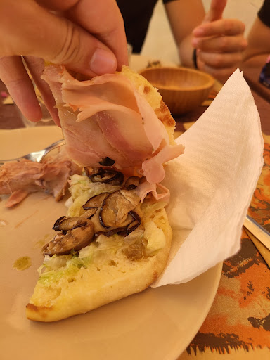 Great bruschetta, alright pasta and okay wine for very affordable prices! We got a bruschetta starter to share with 4, which were great, 4 kinds (truffel, pesto/tomato/mozzarella, Blue cheese/mortadella, roasted bell pepper), all excellent with the truffle one being the best for €10, each had a fresh pasta (€6-8), the one with tomato&ricotta was okay but nothing exciting, perhaps a bit more garlic needed, the one with sausage and ricotta was okay too, though could have used some more salt or perhaps parmesan, the best one was the chef's choice, then with bell peppers, tomatoes, croutons and straciatella. For dessert we shared the sweet bruschetta with whipped cream and (cherry?) Jam, which was good for a bite but more was definitely not needed. The red house wine was alright and very affordable. All in all a very nice place to have lunch or dinner, especially the bruschetta, a name well deserved. Bill was €52 for a big lunch for 4, wine included . Service was excellent. We came a bit late during the lunch time, at 14h15 on a Monday, so we were almost the only ones there but very happy we could still get lunch! Would definitely return for those bruschetta and some wine if it was closer by, but we were just visiting Matera...