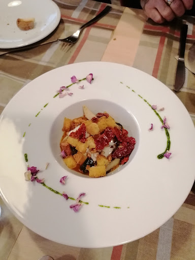 Abbiamo pranzato qui nella settimana di ferragosto, la settimana più calda dell’anno. Al nostro arrivo notiamo con dispiacere che i condizionatori erano spenti... fa niente. La cameriera ci chiede se abbiamo prenotato, rispondiamo di no. Storcendo un po’ il muso ci dice che ci “aggiusta” un tavolo, da premettere che la sala era semivuota (2 tavoli) alle 14. All’arrivo al tavolo scopriamo che quest’ultimo si trova davanti ad una finestra che affaccia sulla cucina, vi lascio immaginare l’aria calda che usciva da lì. Al momento di ordinare ci accorgiamo che sul menù del locale ci sono piatti sia di pesce che di carne, ma troviamo relativamente poca cucina locale materana. Prendiamo una porzione di Scialatielli al pistacchio, buoni, una porzione di orecchiette al sugo semplice, niente di che, e mezzo litro di vino della casa Malvasia bianca, non classificabile, infatti ne abbiamo bevuto solo un bicchiere in due e optato poi per acqua.