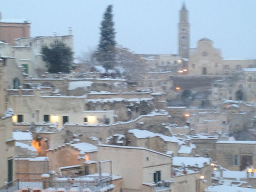 It was a cold winter's night with nary an open restaurant to be found on Befana Eve in snowy Matera (December 6th, Befana, is the morning where kids in Italy awake to presents brought by the legendary witch). We stumbled upon Osteria Malatesta (Malatesta is an old Italian (Rimini) family name and literally means "bad head" or "crazy") while walking down a back street toward the Sassi di Matera (old town - UNESCO site) where there seemed to be more action and open shops.