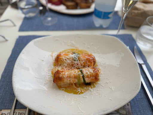 The owners were extremely kind and accommodating. While eating it start raining, and they let us know to make ourselves comfortable under the umbrella with the rest of our bottle of wine as they closed until the later dinner hours. Lovely people, lovely location and completely...