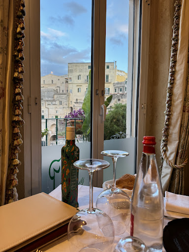 Read moreUno dei ristoranti con la vista più bella a Matera. Se si ha la fortuna di sedersi ai tavoli fuori dove si ha la vista nei sassi è veramente un punto aggiunto! Il ristorante è raggiungibile solamente a piedi dato che è nel corso però è comodo perché si è in un punto centrale a Matera di fianco piazza Vittorio Veneto in via S.Biagio.Nonostante la confusione e i tavoli tutti pieni le nostre ordinazioni sono arrivate in tempi giusti. Nell'attesa ci hanno subito portato un padellino di peperoni cruschi cotti bene con poco olio quindi non troppo pesanti. Successivamente ci son arrivate le nostre portate. Dei gamberi in pasta kataifi come antipasto, risotto con gamberetti asparagi e polvere di liquirizia anch'esso eccellente ed una rana pescatrice fatta a spiedino molto buona non l'avevo mai mangiata così! Tutto sommato un buon servizio! Vorrei dare un paio di consigli come spesso faccio quando vado in altre location. Il primo :c'è da rivedere gli interni del locale!fermatevi un attimo a guardare e vi accorgerete che c'è poca cura degli interni! I calendari sopra la testa della mia compagna appesi ad un muro che staranno appesi li da anni vanno levati.. Anche perché quel muro o meglio grotta scavata nel tufo va già benissimo così semplice senza troppi particolari!i porta lampada son spaccati.. Son tutte cose che poi non mi giustificano più i 5 €di coperto in 2,oppure diversificate magari con vista nei sassi voglio anche pagare quella cifra ma noi avevamo un muro a sinistra e i calendari in testa! Il secondo consiglio :ci vuole più distanziamento tra un tavolo e l'altro troppo vicini! Non solo per un discorso di covid ma anche di sicurezza!vorrei che queste mie "critiche" fossero costruttive e vengano prese per quelle che sono consigli.. Che di sicuro non vanno ad inficiare sulla buona cucina che abbiamo provato e sulla buona serata che...