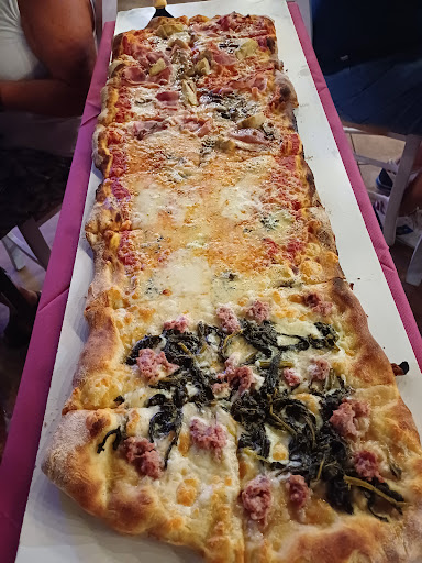 Read moreLa pizza è veramente deliziosa! Viene servita al metro con possibilità di scegliere diversi ingredienti (al metro noi abbiamo preso prosciutto, rossa con rucola e patatine e würstel). Impasto molto digeribile, gustoso e ingredienti freschi: ci sono varietà di pizza molto particolari che non avevamo ancora provato come quella con la porchetta. Inoltre abbiamo chiesto anche se fosse possibile avere un pezzo rossa categoricamente senza mozzarella siccome uno di noi non la tollera ed è stata servita a parte senza tracce di mozzarella! Alla fine abbiamo preso anche dei dolcetti alla Nutella, presumo fosse impasto della pizza fritto. Servizio buono e personale molto gentile. Esperienza da ripetere, torneremo.