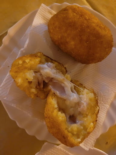 Read moreLocale sulla via principale di Mazara del Vallo, l'aspetto e la musica sono molto invitanti e richiamano molto. I camerieri all'inizio sono sembrati carini e disponibili. Abbiamo ordinato due arancini al ragù e due arancini al prosciutto. Quelli al ragù non erano speciali, quelli al prosciutto erano più buoni. Al momento del conto, i camerieri hanno incominciato a parlare in dialetto indicandoci e discutendo sul conto, infatti ci hanno fatto spendere 20 euro per 4 arancini e due birre piccole. Uscendo dal bar continuavano a discutere sul nostro conto, che a mio parere è stato un po' gonfiato, guardando le voci sullo scontrino risultavano 20 caffè, e non i costi dei singoli arancini e delle birre. Non consigliato se siete turisti per il comportamento...