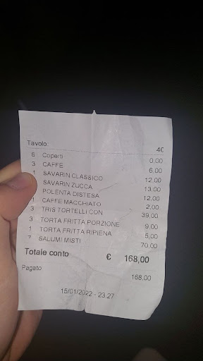 Dopo aver assaggiato le tagliatelle, ho deciso di fare switch con il piatto del mio fidanzato che aveva preso il tris di tortelli: quelli con le erbette non erano neanche male se devo considerare gli altri due gusti… peccato che il ripieno non aveva carattere, era frullato completamente… Quelli di zucca invece erano anche accettabili di gusto e anche di cottura. I tortelli di patata erano immangiabili, con un ripieno che non mi ricorda per niente i tortelli di patate tipici…e il sugo di porcini sopra ha peggiorato il tutto: i porcini erano amari. Siamo stati male in due, io di stomaco invece il mio fidanzato è dovuto rimanere in piedi fino alle 6 del mattino per poter digerire e non fare la mia stessa fine.