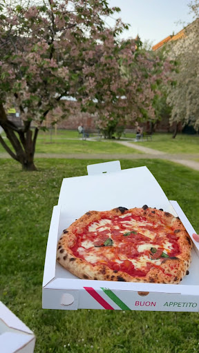 Io qui ci finisco un po’ per caso. Perché mi viene voglia di pizza ma a questo giro la vorrei napoletana. L’asporto nella mia pizzeria preferita non è proponibile per la distanza, e su Melegnano le due più gettonate le ho provate e, con differenze comunque sostanziali, non mi hanno convinta. Quindi me la rischio qui, e devo dire che già la prima impressione è buona: mando un messaggio per chiedere se, volendo una pizza da asporto per sabato sera (sono circa le 12.00), sarebbe stato meglio prenotare. Risposta a stretto giro e cortese, come cortesi sono le indicazioni su dove reperire il menu e, infine, il riscontro alla mia richiesta di sapere quanto sarebbe costata una pizza mozzarella e porcini senza pomodoro. Ovvero 7,50 euro. Un ottimo prezzo. Prenoto. Per le 20.00.