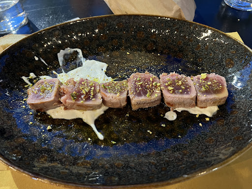 Read moreSiamo turisti baresi e ci siamo trovati nel Salento che come ben sappiamo anche quest’anno si classificano primi come bandiera blu per il mare stupendo e proprio per questo andavamo in cerco di quel cosa di fresco e lo abbiamo individuato in questa piccola struttura dove abbiamo pochi posti all’aperto ma gestiti in modo professionale da due bravi e simpatici camerieri(uno poteva essere il proprietario). Abbiamo ordinato tutto a base di polpo 🐙 tipo panino al polpo 🐙 cucinato in sottovuoto ma a bassa temperatura ,un altro panino sempre col polpo 🐙 ma con una cottura diversa di tipo frittura è l’ultima portata sempre di polpo 🐙 fatto a insalata con un bel piatto ordinato ,accompagnandolo con 2 porzioni di patate fresche( non il solito congelato) ma fritte con una loro crema con aggiunta di nero di seppia con un retrogusto non molto forte ma delicato al lime. Abbiamo preso anche un paio di birre alla spina e una bottiglia di acqua. I prezzi sono in linea visto il punto è la stagione estiva. Ringraziamo per gli amari della casa e che sono stati apprezzati e offerti. Buona fortuna e buon lavoro consigliandolo a tutti. Lascio alcune foto per la mia presenza in questa piccola chicca. Al...