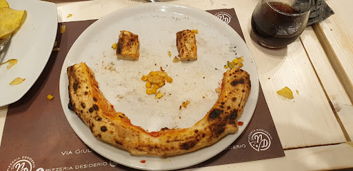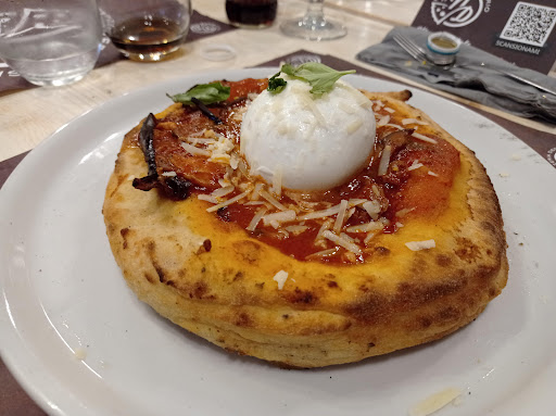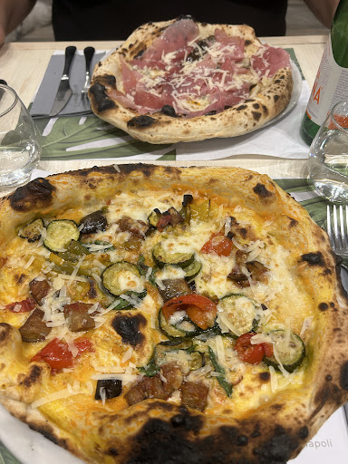 Ho provato questa pizzeria in occasione di un compleanno di un'amica. Il locale è abbastanza grande e ben curato. Il menù delle pizze è davvero interessante, oltre le classiche ci sono alcune pizze che ti fanno venire l'acquolina in bocca solo a leggere gli ingredienti. Personalmente ho provato la Desiderio, una pizza fritta, ripassata al forno con ragù di carne, melanzane ed una bella burrata! Pizza veramente buona e saporita. Poi ho assaggiato la Scusate il ritardo con cornicione ripieno di ricotta, al centro: pesto di basilico, provola di Agerola, polpettine fritte, melanzane a funghetto, pepe nero, parmigiano reggiano; molto buona anche questa; ancora ho assaggiato una Eredità della Nonna con parmigiana di melanzane, salsiccia di maialino nero sbriciolata, provola affumicata di Agerola, basilico, scaglie di parmigiano reggiano. Le pizze hanno un impasto leggero e gli ingredienti sono ottimi. Alle pizze do 5 stelle. Sarà che ci siamo stati di sabato sera e che la pizzeria fa sia asporto (con grande affluenza) e sia sala, ma il servizio è stato assolutamente inesistente se non imbarazzante, ci siamo seduti al tavolo alle 21:30, dopo circa 30 minuti abbiamo avuto gli antipasti (frittatine crocche e montanarine - tutte buone), ancora errori nel portare le birre, arrivate anche queste dopo ripetute richieste, ma le pizze sono arrivate alle 23:30! Quindi al servizio do 1 stella. Media 3 stelle. Sicuramente ritornerò perché le pizze meritano davvero, ma comunque attendere 2 ore anche di sabato sera non è corretto. P.S. la gente in sala deve avere la precedenza su chi...