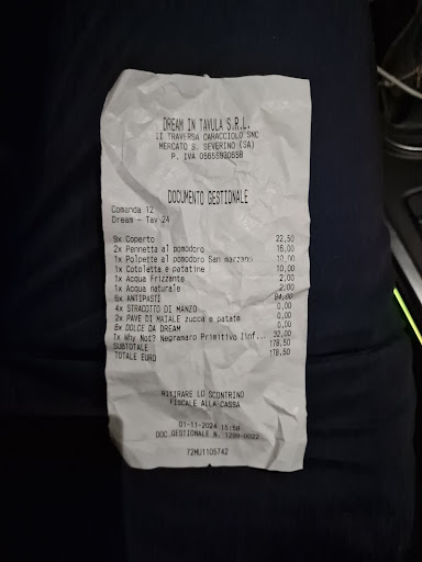 DO UNA STELLA PERCHÉ ZERO NON È POSSIBILE! Vi racconto com'è andata senza aggiungere nulla di più: nostro arrivo ore 13:40, 6 adulti e 3 bambini. Alle 14:10 finalmente possiamo ordinare. Noi adulti scegliamo il menù fisso a 40€. Arrivano alla rinfusa (dopo mezz'ora) 2 penne al pomodoro, una cotoletta e un piatto di polpette. Alle 15:00, dopo che avevano più volte portato piatti non nostri che abbiamo mandato indietro, finalmente arrivano 6 antipasti, di 4 pezzi ciascuno (1 polpetta, 1 flan di patate, 1 cannolo piccolo con formaggio, 1 tortino di zucca). Dopo ulteriori solleciti arriva anche il vino che avevamo ordinato alle 14:10 (la coca cola non arriverà mai). Chiediamo pane ma figurati. Alle 15:50, estenuati, decidiamo di andare via, non arrivando più nulla del menù fisso. Il conto? Ce ne viene presentato uno da più di 400€. Facciamo presente che non abbiamo mangiato nulla di quello che c'era scritto e, dopo una vera trattativa anche su quanti eravamo (insistevano per farci pagare 11 coperti con 2 bimbi di 9 mesi che erano nel passeggino) arriviamo alla cifra di 178,50€. Follia. E peraltro è stato difficile chiedere anche la fattura, che forse arriverà. Come noi almeno altri 10 tavoli si lamentavano del servizio ricevuto. EVITATELO...
