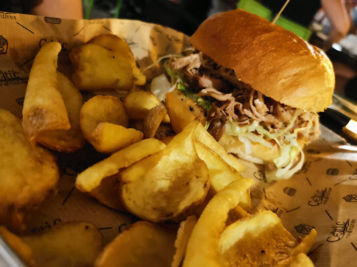 Read moreIl locale è carino, il cibo è buono ma non eccezionale, decenti gli hamburger ma non troppo (il pane lascia molto a desiderare), molto buone le pizze (ma non è una pizzeria), sconsiglio gli hotdog (meglio quelli a 2,50 euro dei camioncini), i frittini degli antipasti lasciano molto a desiderare, La rapidità del servizio al tavolo scarsa, la gentilezza molto buona del personale al tavolo molto buona. Rapporto qualità/prezzo pessimo. La cortesia del personale che gestisce le prenotazioni e accompagna ai tavoli è a livelli pietosi... Prenotazione effettuata per le 20, arrivati alle 20.25 perché era impossible trovare un parcheggio. Il personale addetto alla sala o che gestisce le prenotazioni quasi ci rimprovera per il ritardo, ci dice che il tavolo è disponibile ma che è un'altro perché a causa del ritardo il nostro è stato dato ad altri clienti (probabilmente senza prenotazione?!?). Arrivati al tavolo ci spiega che avremmo dovuto fare tutto velocemente perché se fossero arrivati i clienti che avevano prenotato dopo ci avrebbe chiesto di liberare il tavolo (avrei mangiato tranquillamente per tre ma perché regalare soldi a un locale con personale così squallido?). Dire che l'accoglienza e l'ospitalità sia stata orrenda e poco. Se cercate un pub "celtico" come quelli che potete visitare in Galles e Scozia potete scordarvelo. Diciamo che verrete accolti in stile bar/bettola...