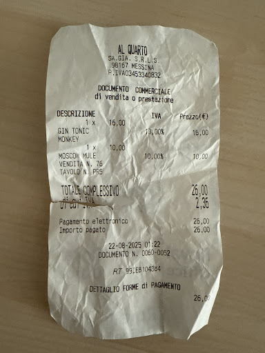 L'unico aspetto perfetto del locale è la sua posizione, proprio di fronte alla spiaggia dello Stretto di Messina. Fine. Il resto solo scarsa qualità nella preparazione del cibo a prezzi tutt'altro che convenienti, cocktail che sembrano essere prodotti da un bambino che si diverte a miscelare bevande (con qualità di alcol che sembrano tutt'altro che ottime) e serviti addirittura senza controllare che la cannuccia sia delle dimensioni corrette rispetto al bicchiere. Ciliegina sulla torta il servizio. Non credo in vita mia di aver visto un servizio così inefficiente e svogliato, ecco alcuni esempi: Non portare i bicchieri dopo aver portato l'acqua al tavolo; Sbagliare o capire male la comanda e fare finta di niente (portando quindi il prodotto errato), o addirittura dimenticarla completamente Tempi di attesa spesso lunghi oltre ogni misura e assolutamente senza senso (40 minuti per una coca cola o una bottiglietta d'acqua a fronte magari di un cocktail arrivato subito 🤔).