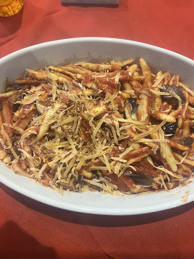 Read moreLeider fast nichts vegetarisches. Ich wollte eigentlich Spaghetti Pasta bestellen. Das einzige vegetarische war Pasta mit Tomatensoße. Diese war allerdings nicht wirklich lecker und ich hätte es zu Hause besser machen können, und die Nudeln kamen nicht als normale Spaghetti Nudeln an sowie die anderen Gerichte mit Fleisch, sondern waren solche Teig Nudeln wie man auf dem Foto sieht. Es hat mir leider nicht so geschmeckt. Vielleicht liegt es aber auch einfach an meinem persönlichen Geschmack. Hat sehr lange gedauert, bis ich die Rechnung bekommen habe, weil man dort leider viel ignoriert wurde als Tourist. An sich ging es aber schnell, bis ich mein Essen hatte. Auch die Aussicht ist schön, dass es direkt an einem See ist würde eventuell noch einmal zur Pizza kommen, aber...
