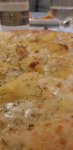 Io e la mia ragazza eravamo alla ricerca di una pizzeria e convinti dalle recensioni positive decidiamo di provare questo locale e di prenderne due d'asporto. Ci tengo a precisare che sono state prese intorno alle 20, orario in cui non era presente quasi nessuno quindi senza che ci fosse frenesia nella preparazione. Un primo campanello d'allarme arriva nel momento in cui saliamo in macchina e non avvertiamo alcun odore provenire dalle pizze pur essendo bollenti. Nell'aspetto si presentavano piccole e la Margherita sembrava una pizza surgelata. L'impasto non è quello della pizza tradizionale, assomiglia più ad una focaccia, dal sapore insipido e dallo strano retrogusto amaro. Nella mia pizza, pagata 10 euro, erano presenti: speck, funghi, crema di formaggi e patate, stranamente l'unico gusto preponderante era dato da quest'ultime. Nonostante le dimensioni non ho voluto mangiare nient'altro disgustato dal sapore che mi era rimasto. Sono un grande amante della pizza, l'ho mangiata ovunque, e penso che questa sia stata una delle peggiori che abbia mai provato in più di 20 anni. Sconsiglio...