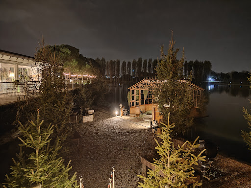 Siamo stati qui a cena per un compleanno tra pochi invitati, l'immagine appena scesi dalle auto è stata d'impatto, le luci del ristorante che si riflettevano sulle acque del laghetto creavano una immagine da cartolina. Dentro il locare è saturo oltremodo di addobbi,mobilio, libri, tappeti e piante, che rendono tutto il ristorante molto accogliente e suscitano la curiosità nel riconoscere i vari oggetti disseminati ovunque. Nel mucchio ho notato anche un po' di ciarpame, ma tutto disposto con gusto, effetto finale super. Per tutti questi motivi la reputo una location strepitosa per gli eventi (va bene ma è da migliorare il bagno). Durante tutto il servizio c'era una cantante bravissima che suonava e cantava dal vivo, ogni tanto variava mettendo qualche brano dance del momento con il mixer, dopo mangiato molti si sono messi a ballare tra i tavoli, molto bello. Il servizio sin da subito mi è sembrato carico di apprensione e inesperienza, sempre garbato e gentile, pieno di coccole frivole e mancante su banalità. La cucina è stata la parte più deludente della serata, ho ordinato 2 portate, carne salada con valeriana, battuta di manzo condita. La carne salada ben presentata sul piatto aveva un pessimo sapore, temperatura freddissima, non sapeva di nulla di commestibile, penso sapesse di "frigo". La battuta invece è stata divertente e quantomeno gustosa; è arrivato un cameriere con un carrellino, mi ha presentato una tartare scondita e mi ha chiesto come la volevo condita, sul posto con diversi ingredienti ha mischiato il tutto. Durante tutta la serata siamo stati consigliati sul vino dal sommelier, dal prosecco iniziale ai rossi durante il pasto molto bene, male quello per il dolce che abbiamo lasciato sul tavolo.