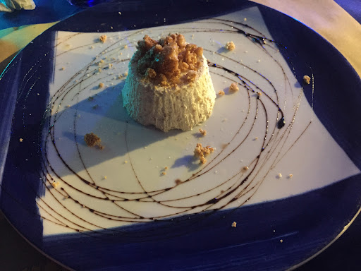 Great atmosphere for an evening dinner. Glowing lights on each table and great view of the sea and sunset. Small selection on their menu. Food was tasty but nothing special. Our main dishes were served almost immediately upon ordering and we were still having our appetizer. Table was small so wasnât much room to eat comfortably after that. We asked to sit along the patio edge for a better view and were denied on basis of reservationsâtables remained empty entire time we were there. During our meal they offered to move us to the edge, but we already had everything on our table so we didnât take them up on offer. Itâs a cute little place but expensive for what it is.