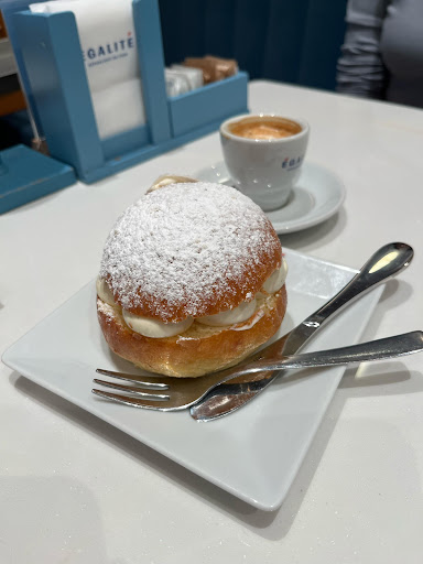 Read moreHad a mid day break at Egalite with their tropeziennes. This is a Italian style brioche bun filled with chantilly cream. The correct way to eat a tropezienne is to cut from the top to bottom, and combine the top & bottom of the bun with the cream - do not separate them! The top of the bun provides flakiness with its crispy surface - almost too dry if eaten alone. The flakiness is well balanced with the cream - dense and with a slight note of citrus. Overall a clean and comfortable shop with decent choices...