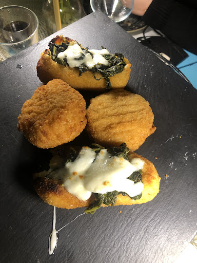 Read moreIeri sera abbiamo pensato di prenotare tramite "the fork" in questo locale. Sconto 40%.. e meno male perché i prezzi sono esagerati sia rispetto alla qualità del cibo sia rispetto al trattamento da parte del personale. (2.50 di coperto nemmeno fossimo in piazza duomo). Prenotazione ore 9. Arriviamo 15 minuti prima e vediamo un tavolo libero.. niente ci fanno aspettare fino alle 9 (giustamente) per poi farci accomodare nello stesso tavolo libero. Abbiamo ordinato 6 pizze e ne abbiamo mangiate solo 5 perché la sesta non è mai arrivata! Come antipasto abbiamo preso 2 parmigiane (2 porzioni su 6 commensali perché costavano "solo" 12 euro l una..); l hanno presentata in una sorta di vasetto ermetico. Pessima qualità. Melanzane sciape e troppo impanate, poco pomodoro e la mozzarella, dura e gnucca, formava una sorta di tappo al vasetto. Qualcuno dovrebbe spiegare loro come si fa una vera parmigiana.. Torniamo alle pizze che dovrebbero essere il punto forte del locale. La mia (di cui allego foto) era praticamente mezza cruda. Me ne ero accorto già dall aspetto biancastro (da menu era senza pomodoro quindi chiedo l aggiunta di base rossa con risultato che lascia davvero a desiderare.) Ma vista l ora di attesa, la confusione nel locale, e il personale che non sa organizzarsi decido di non fare questioni e addento ciò che posso preso dai morsi della fame. Troppo salata per eccessiva quantità di pecorino (che di per sé è già molto saporito).. insomma non valeva di certo gli euro spesi. Anche gli altri commensali non sono rimasti entusiasti delle loro scelte, sopratutto il ragazzo a cui non è stata portata la pizza, nemmeno dopo svariati solleciti e con risposte davvero maleducate da parte della cameriera napoletana: al primo richiamo suggerisce di mangiare una fetta della mia pizza scartata in quanto cruda; al secondo richiamo dice che la pizza è in forno, al terzo richiamo dice che la pizza sta per uscire.. dopo 10 minuti torna al tavolo domandando quale pizza mancasse in modo da poterla preparare. Non era stata aggiunta alla comanda. (Peccato che poi la troviamo nel conto.. ?? Allora c'era nella comanda... qualcosa non torna) Quando facciamo notare che un ragazzo è rimasto senza cena non è arrivata nemmeno una scusa da parte Della Cameriera che in tono insolente e arrogante vuole scaricare la colpa alla collega (Peccato che il cliente non può considerare la mancata organizzazione e comunicazione tra colleghe). Insomma anziché cercare di rimediare al danno lo peggiora dicendo "ok perfetto così, non ti porto niente." (Scusa????????) Decidiamo di non prendere né dolce né caffè per andarcene il prima possibile in modo da far cenare il sesto amico in altro...
