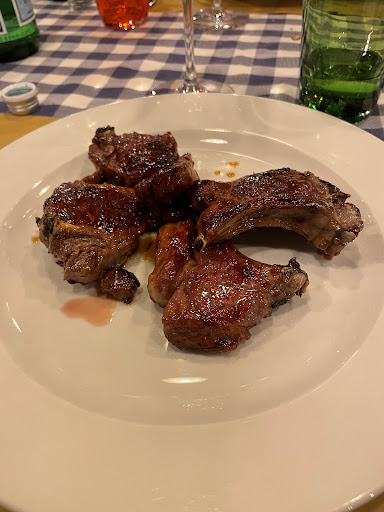 Great night in very particular restaurant on a secondary street of viale Monza. The inspiration is clearly Tuscan cooking with a salt of the earth series of entree, first courses that appeal the most varied palate and the "piece of resistance" the "braceria" which encompasses all the bbq/over open fire cooking very dear to the Tuscan tradition. Costata and Fiorentina are really good, hearty portions starting around the the 1,5 kg for the Fiorentina and the 800gr/1kg for the costata. We ordered antipasti that covered different kinds of ham, sausage and truffle mortadella with "gnocco fritto" @eki8128 ordered a very fresh and crunchy mozzarella and puntarelle salad. We then moved to a costata, a tagliata and a fiorentina. All very nice and very well cooked and presented with a side of roasted potatoes. To drink we chose, from a quite substantial wine menu, a very nice bottle of "lacrima di morro d'alba". A fairly tasty and important red wine from Marche that presents itself with black berries and liquerice notes on the palate, very fresh on the tongue that complemented the dinner quite well. As dessert a parfait with a chocolate sauce and a Catalan cream. Both fairly nice with the right crunchy sounds when breaking the caramelized sugar layer. Restaurant itself is really nice. Somewhere in between the rustic and old milanese style, checkered table cloth and a very kind and caring staff that answered all our questions with kindness and knowledge. While it might not be the best "braceria" in Milan, acquechete is a solid choice for a friends night out in a shabby chic setting. Obvs, cause what we ordered, the price was around 60 euros per person. Was expected and quite aligned with others in the same category. Will look forward to come back in summer to check the outside spaces and the al fresco dining...