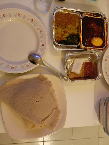 Read moreThe atmosfere was very particular, of Eritrean culture, I think. I ordered chicken zighini with low level of spiciness and some sweets. The zighini was accompanied by some fermented bread, grinded chicken peas and some vegetables. The dish was very nice; however, it was still a bit spicy to me, so be careful with the level of spiciness. The vegetables were not so fresh, but they were ok. The...