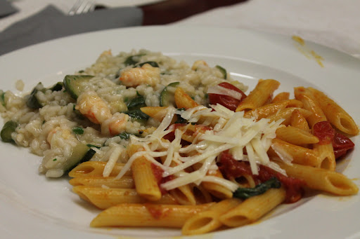 Cominciamo col dire che le porzioni sono abbondanti. I ravioli in effetti erano dei ravioloni. Il ripieno di branzino delicato, il tutto cotto nel burro accompagnato da calamari e gamberi, tutto molto saporito, da apprezzare il fatto che si tratta di pasta fresca fatta in casa.