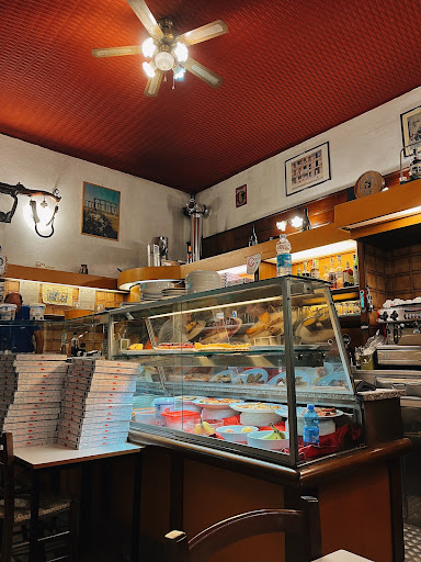 Classic pizzas & calzones, plus cakes & tarts, in a wood-lined space with old photos on the walls.