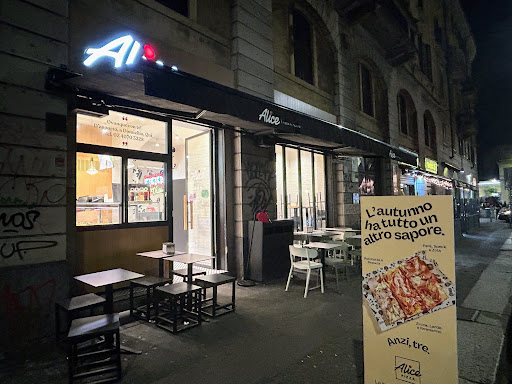Read moreSono già cliente di Alice pizza ma non del negozio di Porta Genova. Ordinata la pizza per 7 persone su app definendo l'ora di ritiro, arriviamo e dovevano ancora non solo prepare Le porzioni ma infornare quanto ordinato. Risultato 40 minuti di attesa, tranci di pizza lanciati nella scatola, qualità molto bassa rispetto allo standard, pizza poco cotta. Inoltre la commessa passava dal servire al banco e con tanto di servizio cassa a mettere il condimento (rigorosamente a mani nude) sulle pizze sfornate... Non ultimo ho richiesto in anticipo di non mischiare pizze vegetariane a quelle con salumi cosa fatta nelle scatole ma per tagliare oltre ad usare lo stesso coltello per tutto la pizza veniva appoggiata su altre teglie di pizza qualunque fosse il...