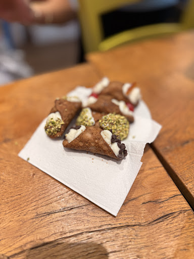 Ammu Cannoli Espressi Siciliani is a cannoli and dessert shop in Milan. Ricotta cannoli is a typical Sicilian dessert of Arab origin, and we were told by some locals to check it out. There are tables and chairs available to dine in and relax.