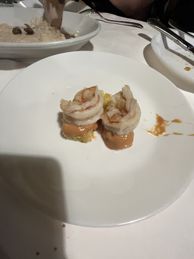 Starters: very good, but 14€ for literally 3 shrimps on bread (see pictures - one was missing there) with a quite bad presentation (plate looked like a spare one randomly found around the kitchen). Vitello tonnato very good too, but also there the portions are not at a trattoria level especially for the price.
