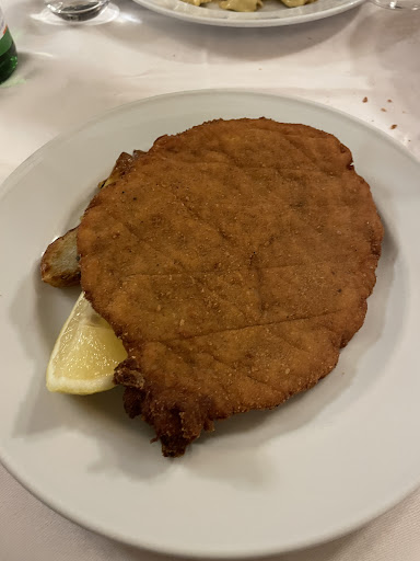 Our server was very friendly and spoke English decently. The restaurant offered us this complimentary warm fried cheese dish that was very good. We also had their house red-wine, which was pretty good; mild, but slightly dry. Definitely get the osso-bucco. I got the steak w mustard sauce. I felt it was good but not exceptionally good as it seemed to be described. I was told the mustard sauce was very special. It could be a difference in palette. The mushroom pasta was very good. We had tiramisu as the dessert and it was one of the better tasting ones. Overall, I really enjoyed the dining experience and would recommend for...