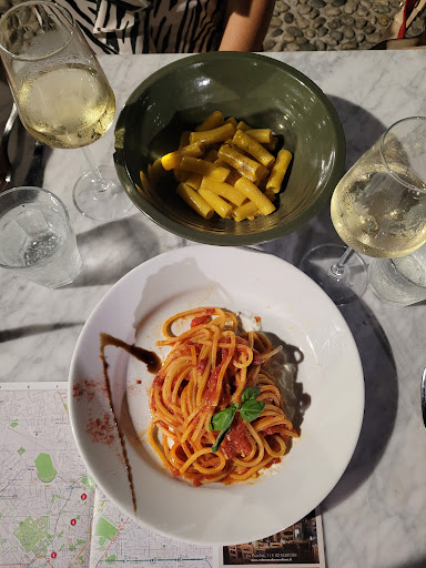 Accidentally stumbled upon this gem, and so glad we did! Honestly, the adorable waitress saw us trying to qr-code the menu, she came out with the physical menu, and once I smelled inside, it was a total yes we’re having dinner here! We’re American, they were very helpful on deciding menu items and spoke English very well. Delish appi, even their less expensive wine still love and got a bottle to share with my husband. I got the clam smoke pasta, what a delight and unique take! My husband got pasta ragù, classic yet such a savory melting bite. We shared their aged steak, and oh my…I didn’t know I loved medium to rare steak! Such an elevated, crafted steak with veggies so good it was like candy. Lovely atmosphere, and attentive service. Loved it...