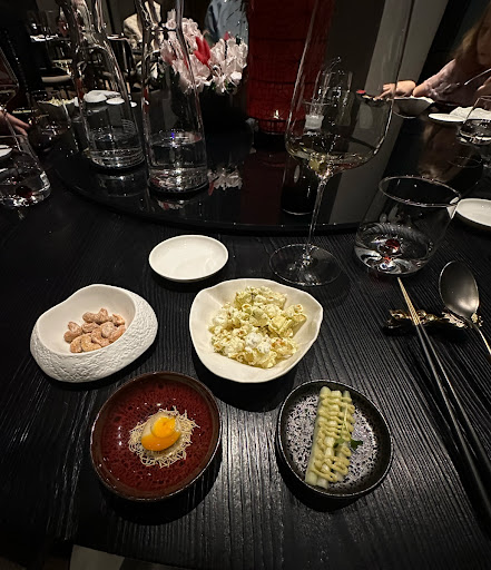 Read moreRistorante cinese gourmet a Milano. Il ristorante si presenta esteticamente in maniera davvero eccellente, curato in ogni dettaglio, tutto pulito e al posto giusto, con un design degli interni (a gusto personale) davvero bello. Il personale fin dall'inizio ti fa sentire davvero coccolato e ti segue e consiglia per tutto. Parliamo ora del cibo. Come benvenuto ci hanno portato dei pop corn aromatizzati alle alghe e granchio, una cosa spettacolare, davvero buonissimi. Per antipasto ho scelto degli involtini primavera, a mio parere completamente insapori, non piu buoni dei classici forniti (congelati e poi fritti) in tutti gli altri ristoranti cinesi. La cosa mi lascia abbastanza perplesso perchè si vedeva che erano fatti a mano. Come altri antipasti abbiamo preso dei ravioli giapponesi al vapore con carne, foie gras etc. Ravioli, ECCEZIONALI, davvero fuori dal comune. Super saporiti, la pasta del raviolo si scioglieva in bocca (realizzata con la pasta dei panini bao super tirata), carne dentro perfetta e all'interno era conservato anche il brodo della carne, che messo in bocca sprigiona tutto il sapore. INCREDIBILE davvero. Per piatti principale ho scelto una pasta di grano saltata con verdure e straccetti di manzo al pepe. Qualità degli ingredienti superba, peccato per il piatto, a mio parere sapeva solamente di pepe, davvero esagerato da coprire completamente ogni sapore del piatto. Vero peccato. Il dolce ho scelto un estivo, dolce composto da una meringa alla fragola, gelato al pistacchio, incredibile, davvero bello da vedere e buonissimo da mangiare. Ogni piatto è stato accompagnato da un vino consigliato dal sommelier del ristorante, davvero bravo, preparato e simpatico. Ogni piatto si sposava davvero bene con il vino consigliato, tra l'altro vino di altissima qualità.