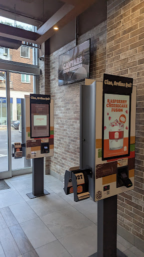 I totem per l'ordinazione sono messi in fila, sulla sinistra rispetto all'entrata, di facile utilizzo: come in altri comuni fast food, c'è la possibilità di pagare direttamente qui o in cassa, di ritirare il proprio ordine al bancone oppure di farsi fare il servizio al tavolo. C'è un alto livello di personalizzazione, che si traduce in un lieve aumento di prezzo rispetto a quelli base, ma tutto sommato le scelte opzionali non pesano così tanto sul totale.