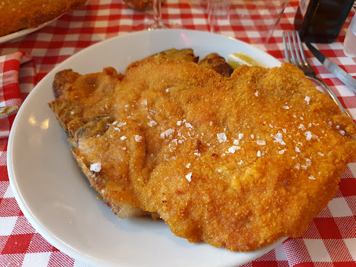 Read moreI give 3 stars mostly for the fair price (38 euros two people). That is a almost a turist trap. Horribles first dishes, how can you serve spaghetti aglio e olio and penne al pomodoro as a first dish? Horribles ravioli with burro and salvia, in first they served us tortellini not ravioli, in second they were horrible, same or maybe lower quality of the Esselunga (market store) ones that cost 2 euros for 250 grams. Quite good the lasagna, good the cotoletta alla milanese that I'll share with you in the picture. Definitely a place not for italian people but ok for tourist with low italian...