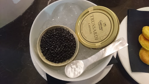 The list of cocktails was very diverse, and the drinks menu reflected the upscale atmosphere. I decided to start with a cocktail called Beer Americano, a mix of bitter Campari, red Vermouth, and white beer, topped with the zest of a fresh orange. This was a uniquely refreshing cocktail, as the citrus notes really picked up on the herbal flavors of the Campari. I chose to indulge in Trussardi Calvisius caviar, an excellent choice to match the flavors of my cocktail. This is seriously the best caviar I have ever eaten, fresh, a notch salty, but delicate and delicious.