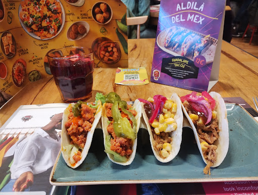 The food is in some ways similar to Mexican food, but in most ways not. It's very overpriced and everything tastes like it came out of a plastic bag. The guacamole is obviously industrial and the fried chicken tacos taste like generals tso's chicken of a generic Chinese menu. I ordered the nachos Rico's as well, they should have had some kind of creamy jalapeno salsa on them. I asked them to spare me the Chile con carne, imagining allready the destruction a precooked Chile could do to my toilet. When the "nachos" arrived they were a mountain of the most generic tortilla chips with spots of guacamole, tomato and sour cream. I inquired to the waiter and asked where the sauce was, he told me they ran out and that they prepared them without it. I mentioned I would not have ordered a 10 euro plate of nachos knowing that ingredients were missing and he said he would talk the manager. That was the last I saw of my waiter. When I went to pay the manager asked me if everything was ok and I mentioned the nachos, which he was allready aware of. He politely apologized and put a Messina beer pint glass into a bag and told me it was a gift. Then he charged me full price for the nachos. When I asked about that he said did you eat them? And of course I had since they were sitting on my table for 45 minutes with no news from the waiter. The manager said the beer glass was to forgive them. I payed, returned to my table to gather my things and noticed the lady at the table next to me was eating her taco with a fork. Garbage food for garbage people. I'll...