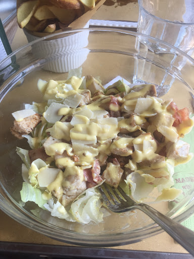 I ordered the Chicken Caesar Salad and was really disappointed that the dressing seemed to be purely mayonnaise. I asked if this was the correct dressing or if they accidentally used mayo, but the waiter assured me that it was Caesar dressing. And Iâm not a fool, I realize that mayo makes up a big part of the original dressing but honey, it is not JUST mayonnaise. In the end I had to send it back because for âŹ14 I was expecting something closer to the American version (seeing as it is called California Bakery). Cmon, âŹ14 is pretty darn pricey for a salad, and if you are just going to put mayo on lettuce, bacon, croutons and cheese đ that is a joke. Now if this was a traditional Italian restaurant and I got this, I probably would have bit my tongue and just blamed it on myself ordering something not Italian in Italy. But no, this is an American-inspired restaurant so there arenât too many excuses I can make there.