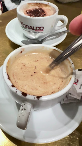 There were still some bomboloni left, and the cappuccino made by the young guy from China was really good. Last time someone else prepared it and it was terrible — they didn’t even ask if I wanted cocoa powder. This time the experience was much better ————