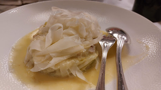 Read moreHats off to the chef and his team. We can in for lunch on a Saturday and they were nice enough to seat us without reservations( I wouldn't recommend it) As a tourist my first idea a restaurant will be good is that everyone there is local. Other than us everyone here was local. The chef came out to take our orders personally and walked us through the menu. We had the ossubuco and the cotoletta. We have eaten in zmichelin starred restaurants in the past couple of weeks here in Italy and this food made me want to bring my family back for a meal. The saffron risotto was cooked perfectly and the ossubucco and the gravy were just 😋. The veal, especially the part on the bone almost had me eating my fingers. The seasonal sorbet, was some sort of berry but it doesn't matter because it rivaled the best gelaterias we had been too. The coupe de grace was the recipe book of his personal...