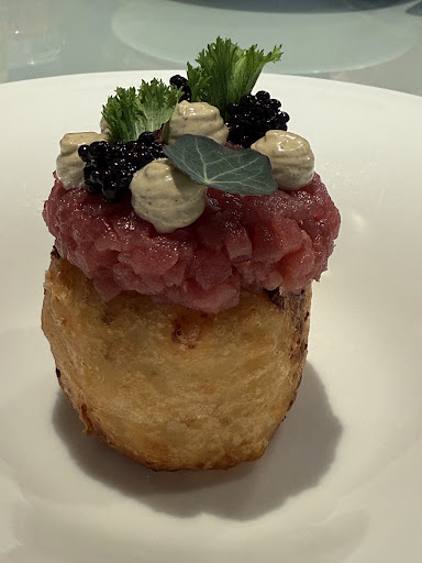 Another hugely disappointing moment came when first pizza dish arrived, after two appetizers - first one I can't remember after 2 hours - so it is not worth mentioning, the second one was tuna tartar served on a bun filled with some pepper pasta (not bad actually). Pizza slices were so small - when you combine them all, they would make less than half of a pizza. So at the and you end up paying 50 EUR for (literally) two bites as starters and 4 small pizza slices (which altogether don't make half of a pizza). If these pizza dishes would be bigger so altogether they make one full-size pizza, and if guest would have the freedom to choose pizzas he likes, you would not have so many unhappy and disappointed customers.