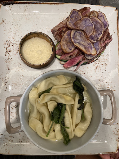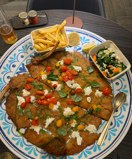 Read moreThis restaurant is definitely 5 stars! The service was excellent. The atmosphere was laid back and wonderful. I would highly recommend the cotolette veal with cheese and mushroom. Beautifully crispy on the outside, but moist on the inside. The French fries with season salt were a great complement. My wife had the risotto with bone marrow. She really liked it, even though she tries to avoid red meat. We are staying at the Hilton and were pleasantly surprised to find such a great restaurant...