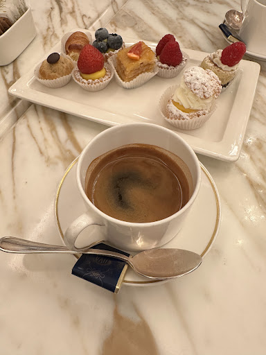 Finding a table at Cova Montenapoleone on a bustling Saturday afternoon without a wait was a stroke of luck, given the café's renown and its location in the heart of Milan's chic fashion district. This esteemed pasticceria, with its luxurious ambiance and clientele of fancy locals and discerning tourists, offers an unparalleled feel-good experience for those looking to indulge in the finer things.