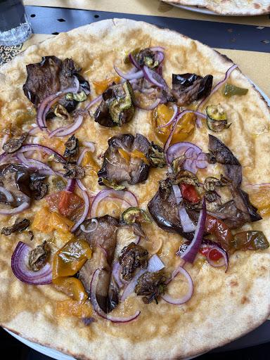 Pizza was very tasty but arrived quite cold. Staff look as though they couldn’t care less about the job. One waiter had two mobile phones, one for taking orders and the other clearly for personal use. He spent most of the time on his personal phone. He also decided to take the plates away before we finished eating. Staff training, or employing staff with some charisma and common sense would help this restaurant. The pizza was, however, definitely above average, despite being served on a cold plate, and drizzled with cold olive oil, which made such a thin base instantaneous cold. This place is fine for a super quick meal if you don’t care about the waiter taking...