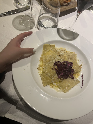 Read moreУжинал в этом ресторане по наводке отзывов в Google. Действительность превзошла все ожидания. Очень уютный, красивый и вкусный ресторан. Пришли чуть раньше, чем у итальянцев начинался ужин. Оказалось, что свободных не забронированных столиков был только один на двоих - то, что нам и было нужно. Так как мы очень плохо, к своему стыду, знаем английский и совсем не знаем итальянский, то изучение меню могло бы стать большой пыткой. Но администратор, очень уважаемый, каким он для нас тут же стал, администратор Роберт, видя наше замешательство тут же предложил нам меню на языке, который мы предпочитаем. Нет, меню на русском у них не было. Как же поступил уважаемый Роберт? Он попросил подождать несколько минут и минут через 10 принес листочки с меню на русском языке, явно переведенных каким-то автоматическим переводчиком. Мы были в шоке от такого внимания к посетителям. В дальнейшем Роберт несколько раз подходил, подливал вино, интересовался все ли у нас хорошо и все время говорил по-русски "Спасибо!". Он сделал наш вечер совершенным. Но не только он. Отдельной похвалы заслуживают повара. Блюда были идеальны. Во-первых, безусловно все было очень вкусным, во-вторых, мясо было прожарено ровно на столько, насколько мы просили. Именно medium rear, как нам нравится. Все блюда подавались с лисичками. Филе говядины с жаренными артишоками было очень мягким. Возможно это была вырезка? Иначе, если не вырезка, то коровы у них божественны. Оленина с лисичками была необычайно вкусна и соус к ней был совершенен. На фото блюда смешаны - мы с супругой всегда заказываем разное и потом делим попалам - так мы познаем больше вкусов. :-) Единственное, что тартар из говядины с лисичками был не маринованным, как мы привыкли в России, а просто свежим. Но я скажу, что это нисколько не омрачило вкус блюда. Наоборот раскрыло его сущность. Мясо было нежным, без резкого вкуса, возможно телятина. Полив его оливковым маслом и поперчив из маленькой мельницы черным перцем, получили новый неизведанный ранее вкус. А маленькие булочки с семенами подсолнечника и тыквы были так вкусны, что их можно было есть, как отдельное блюдо, запивая белым итальянским вином. Вечер удался и, несмотря на наш пеший поход в этот день почти в 30 км, усталость как рукой сняло и воодушевление атмосферой и едой было наивысшим. Это был...
