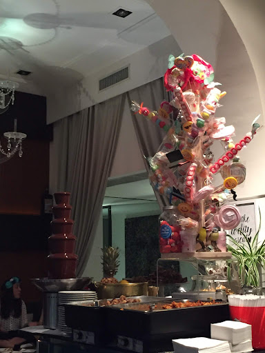 So for those of you who are new to Aperitivo, this is what you need to know: you order a drink (any drink for that matter), places charges you 12 or so euros and then you get free access to the buffet. Is the food good? No, it's not. Will you eat until you drop? If you don't mind the stink eye from the staff, then yes you will. Is the Aperol Spritz worth the 12 euros and food? It's not. While there's a cool chocolate fountain for you to dip fruit and all sorts of cake and pancakes in it, it's not super great.