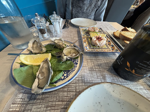 Read morePranzo domenicale. Ci è stato prontamente illustrato il pescato del giorno e le possibilità di abbinamento. Abbiamo scelto gli spaghetti alla chitarra con astice (x 2 - metà astice a testa) e di antipasto un bis di tartare (ricciola e gambero di Mazara del Vallo) + 4 ostriche. Ci è stato mostrato l’astice prima della cottura. Tempi giusti per il servizio, che è stato attento e cordiale. Non abbiamo preso il vino, ma eventualmente ci sono buone proposte di abbinamento. Sorbetto al limone aromatico e dal gusto genuino.