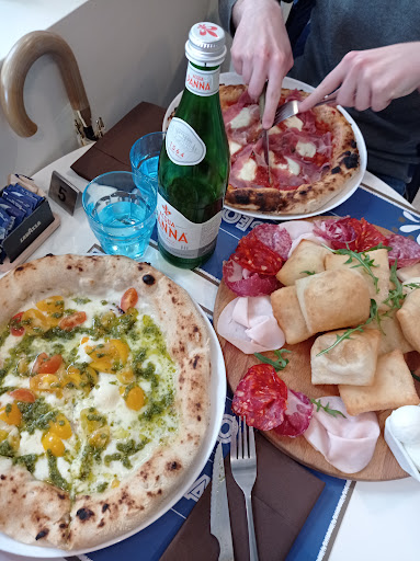 Read moreL'antipasto è composto da un tagliere abbondante di salumi e gnocco fritto. Neanche il tempo di dare un morso è subito arrivata la pizza, quindi abbiamo dovuto fare presente al cameriere che se si chiama ANTIpasto significa che si deve almeno avere il tempo di gustarselo prima della portata principale. Il cameriere quindi come risposta non ha potuto dire niente di meglio che "dovevate specificarlo prima"... Detto questo non ha comunque portato le pizze indietro, anzi ci ha fatto poggiare i piatti su un tavolo su cui giustamente non possono starci due piatti della pizza e un tagliere (se vedete nella foto il piatto in alto è quasi per metà fuori dal tavolo); poi sarà che abbiamo mangiato la pizza fredda ma per quanto buona l'impasto era ancora leggermente crudo. Io capisco l'affluenza di laureatə e studentə in pausa pranzo (come me d'altronde) ma non per questo bisogna servire in questo...