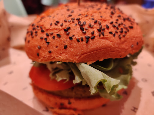 My friends and I went to the Flower Burger restaurant in Corso Garibaldi. I wanted to try it after finding out about it on the Happy Cow app. The restaurant is something in between a casual take-away and a sit-in place, with a really cool psychedelic decor and fun vibe. There were seats both inside and outside.