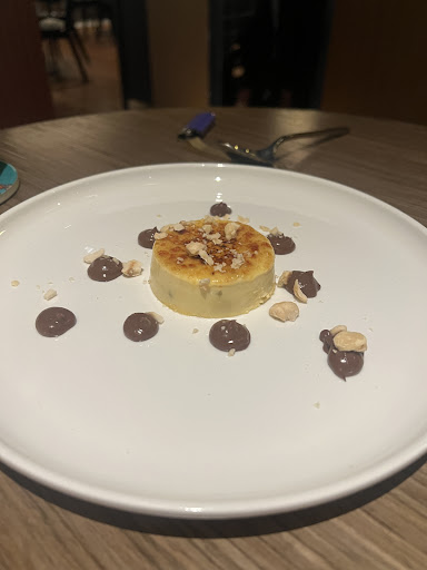 As for dessert, the creme brulee with dark chocolate and roasted hazelnut was nothing short of divine. The velvety creaminess of the creme brulee, paired with the delightful crunch of roasted hazelnuts and the subtle touch of dark chocolate, created a harmonious symphony of flavors and textures that left a lasting impression.