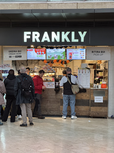 Frankly is located on the inside of the turnstiles near the train tracks. Once you go through the gate turn to the right and you will find the shop under the italo club sign.
